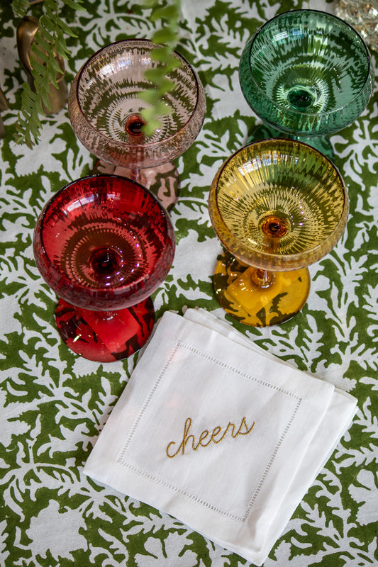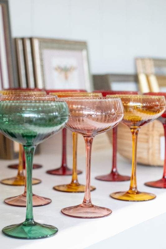 Four Seasons Coupe Glasses – Set in Pink, Green, Gold & Crimson