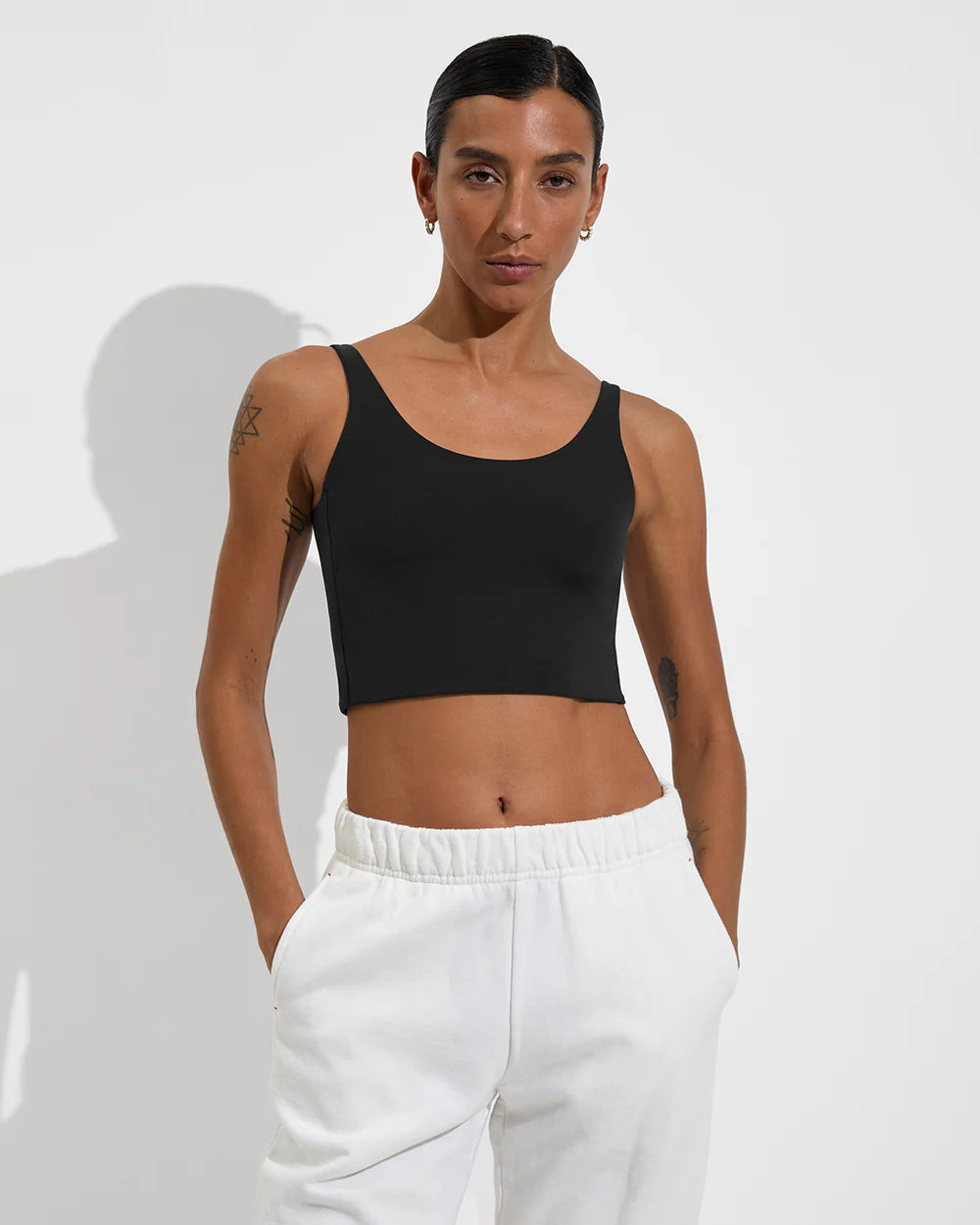 Built for sweat, styled for everyday—meet the Reset Tank. Designed for A–C cups, this compressive, cropped workout tank features a built-in shelf bra, flat seams for zero chafe, and no-slip straps that stay in place through every move. It’s fully lined, super supportive, and made to keep up with low to mid-impact workouts (and whatever your day holds after).